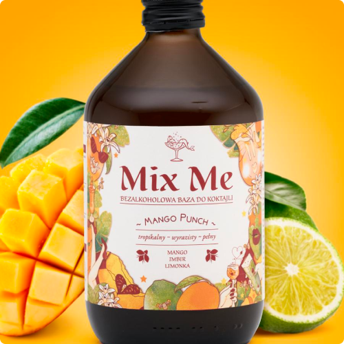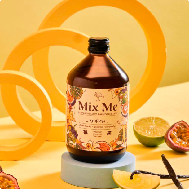 Co wyróżnia Mix Me spośród innych produktów? Bazy Mix Me to efekt pasji Marka Posłusznego, 4-krotnego Mistrza Świata Barmanów, i jego narzeczonej Patrycji Skiby. Razem stworzyli produkt, gdzie każda butelka to gwarancja najwyższej jakości, bez konserwantów, barwników czy sztucznych aromatów. To moc doskonale wyselekcjonowanych, naturalnych składników, które podkreślą smak Twojego koktajlu. Ale to nie wszystko! Mix Me daje Ci nieograniczone możliwości. Mieszaj nasze bazy z ulubionymi alkoholowymi lub bezalkoholowymi składnikami. Każdy smak możesz połączyć z minimum 4 mocnymi alkoholami, winami białymi, winami musującymi. Nasze bazy doskonale komponują się także w wodą gazowaną czy tonikiem.