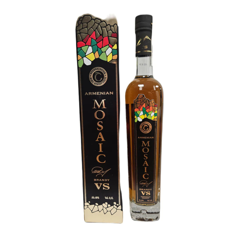 Armenian Mosaic, VS 3 years old to ormiański koniak stworzony z 3-letnich spirytusów koniakowych. Koniak ma jasnobursztynowy kolor ze złocistym odcieniem i delikatnym aromatem z nutami wanilii. Wytwarzane zgodnie z klasyczną technologią z wyselekcjonowanych odmian winogron uprawianych w Dolinie Ararat w Armenii.
