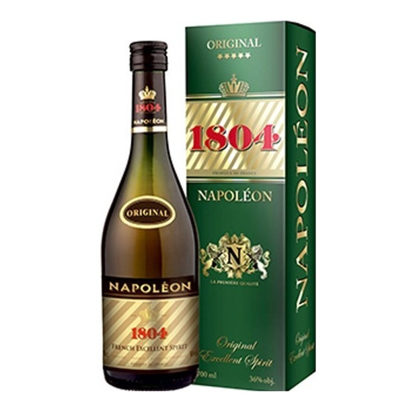 Napoleon 1804 to doskonała kompozycja starannie dobranych i uszlachetnionych destylatów winnych: 3-letnich i 1-rocznych. Harmonijny smak, delikatny, emanujący wonią suszonych owoców aromat oraz ciemno-złocista barwa, to efekt wielomiesięcznego procesu leżakowania w dębowych kufach.