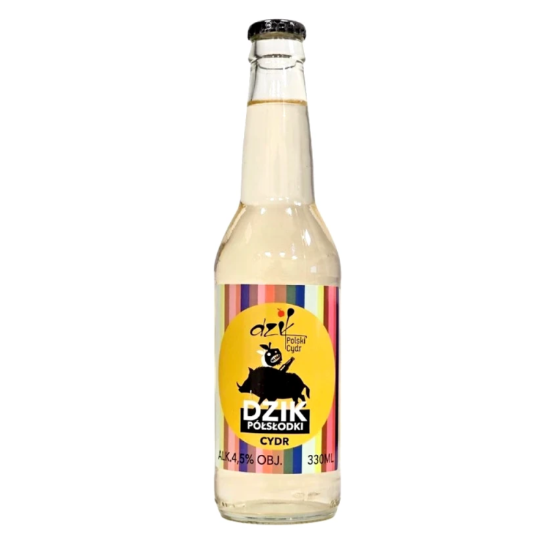 Cydr Dzik Półsłodki to naturalny, półsłodki cydr, produkowany z polskich jabłek przez firmę JRBB sp. z o.o. (marka Cider Inn). Cydr charakteryzuje się lekkim owocowym smakiem i umiarkowaną słodyczą. Dzięki naturalnej fermentacji zachowuje autentyczność smaku, co czyni go doskonałym wyborem dla osób poszukujących delikatnego, a jednocześnie wyraźnego cydru. Serwowany w butelkach 0,33 l, najlepiej smakuje schłodzony.