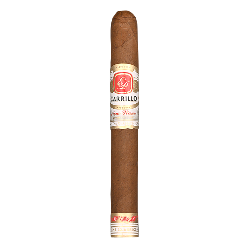 Format: Corona Inch: 5 1/8” x 42 Mm: 130 x 16,7 Moc: MIld to Medium Filler: Dominican, Nicaragua Binder: Nicaragua Wrapper: Ecuador Connecticut Opakowanie: Skrzynka Ilość sztuk w opakowaniu: 20 Podana wartość to cena za 1 sztukę cygara W 2010 roku Ernesto Perez-Carrillo Jr. człowiek stojący za sukcesem współczesnej edycji La Gloria Cubana, przedstawił E.P. Carrillo Core Line i ogłosił, że wkrótce pojawi się cygaro z Connecticut. To, czego Ernesto nie powiedział światu, to to, że zamierza na nowo odkryć sposób postrzegania rosnących pod przykryciem (shade) liści typu Connecticut. Człowiek, który na nowo zdefiniował Maduro, nazwał swoją najnowszą linię NWC, New Wave Connecticut. W rezultacie powstało dominikańskie cygaro z ekwadorskim liściem pokrywowym (wrapper) typu Connecticut, nikaraguańskim zawijaczem (binder) oraz dominikańskimi i nikaraguańskimi wypełniaczami (filler). EP Carrillo absolutnie przebił tą mieszanką wszelkie oczekiwania! Większość wydań cygar z pokrywą Connecticut to poświęcenie złożoność w imię łagodności, ale New Wave Connecticut ma prawie idealne połączenie kremowości, słodyczy i przypraw ze wspaniałymi, łatwo wyczuwalnymi smakami, które zmieniają się pomiędzy zaciągnięciami cygarem.