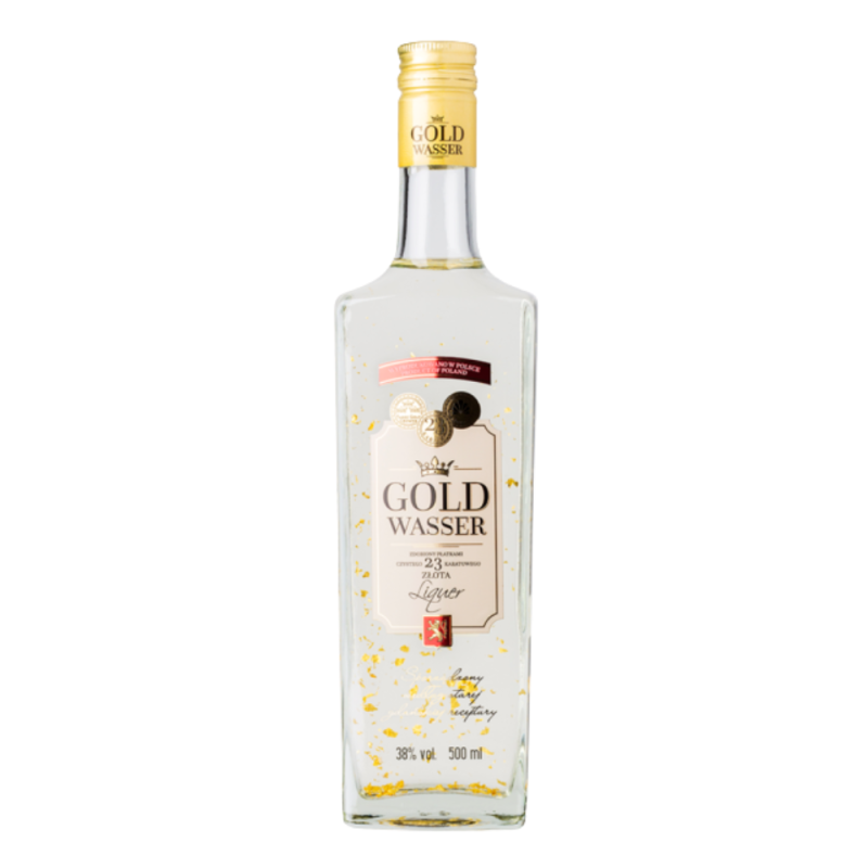 Likier ziołowy zdobiony płatkami czystego 23 karatowego złota.