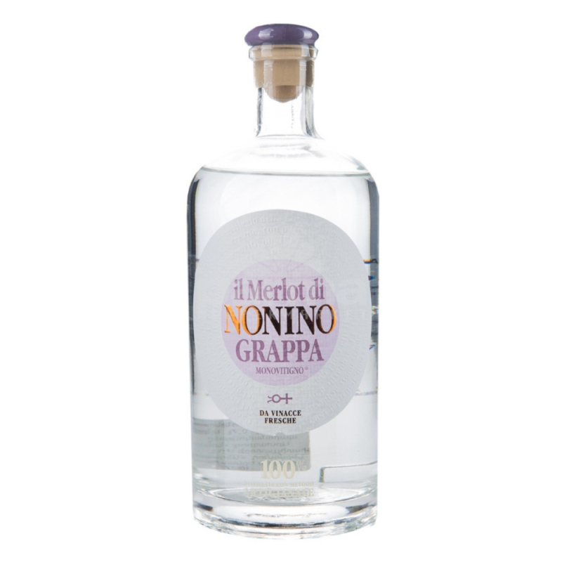 Grappa Nonino Monovitigno il Merlot to destylat produkowany wyłącznie ze świeżych wytłoków pojedynczej odmiany winogron - Merlot. Destylacja odbywa się w małych miedzianych alembikach. Cechuje się świeżym aromatem płatków róż, dżemu wiśniowego i delikatną nutą wanilii.