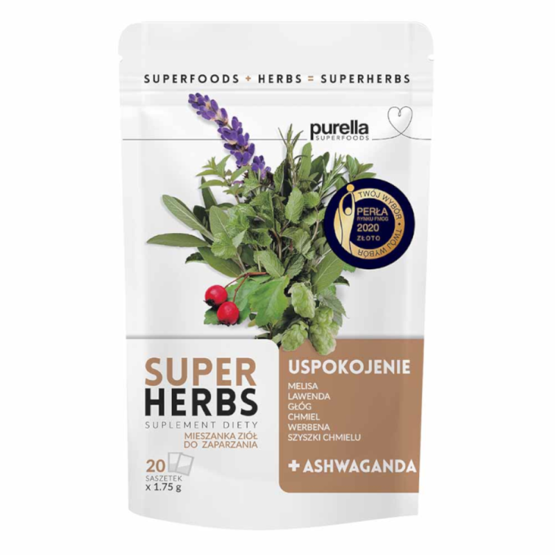 Uspokajająca mieszanka ziołowa to starannie wyselekcjonowana mieszanka ziół i owoców. Zawiera: owoc głogu, liść zielonej herbaty, kwiaty lawendy, liść melisy, szyszkę chmielu oraz ashwagandhę (korzeń witanii ospałej), ziele mięty pieprzowej oraz ziele werbeny pospolitej. Z uwagi na bogactwo smaku i zawartość surowców roślinnych, napar z mieszanki stanowi wspaniałe uzupełnienie diety.