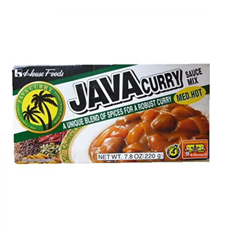 Curry średnio ostre. Kostki przyprawowo-bulionowe do przygotowania sosu-gulaszu w stylu japońskim. Java Curry najczęściej stosowana jest do potraw z warzyw i mięsa (wołowiny, jagnięciny, kurczaka) oraz krewetek podawanych z ryżem, lub makaronem udon.