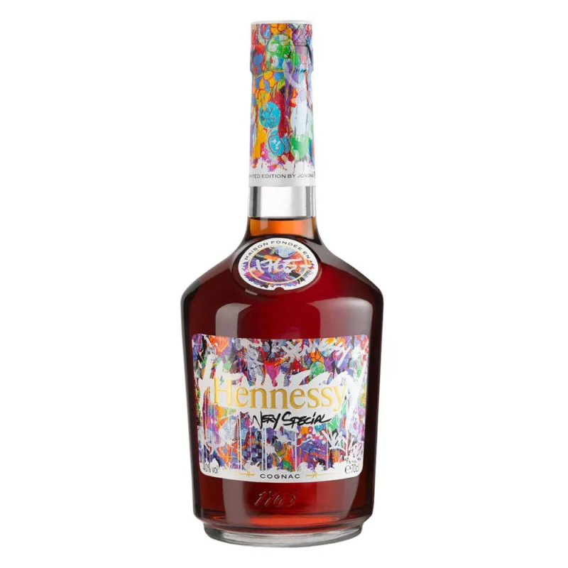 HENNESSY VS LIMITED EDITION BY JONONE. Można by pomyśleć, że to tylko farba poplamiona w sposób artystyczny, ale jeśli przyjrzeć się bliżej, dziedzictwo Hennessy Cognac jest ukryte w projekcie. Pikowany wzór korka i trzy gwiazdki wskazujące na Bardzo Specjalną jakość i historię tej kultowej butelki można znaleźć w projekcie JonOne. Edycja Hennessy z 2017 roku jest siódmym w trwającej serii współpracy Hennessy z międzynarodowymi artystami. Hennessy zachowuje swoje miejsce jako najlepiej sprzedający się koniak na świecie, a smaku i jakości nie można znaleźć nigdzie indziej. Hennessy VS to mieszanka ponad 40 różnych eaux-de-vie z czterech najlepszych regionów uprawy koniaku. Jedna z najlepszych butelek do podpisu, jest doskonałym prezentem koniakowym, idealnym do mieszania lub popijania.