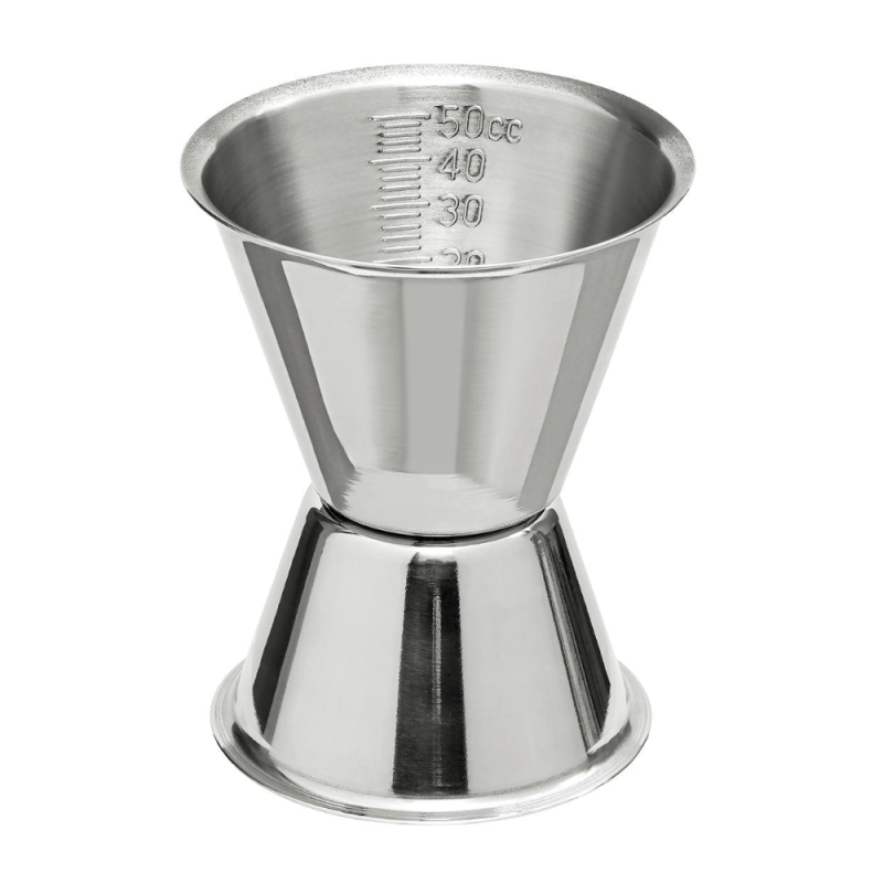 Dwustronna, profesjonalna miarka barmańska o wypełnieniu na 30ml oraz 50 ml. Wykonana z jakościowej stali nierdzewnej. Jej atutem jest umieszczona wewnątrz obu stron jiggera skala pozwalająca odmierzyć płyn co 2 mililitry. Kolejnym plusem jest jej szeroki kształt dzięki któremu łatwo nalewa się do miarki.