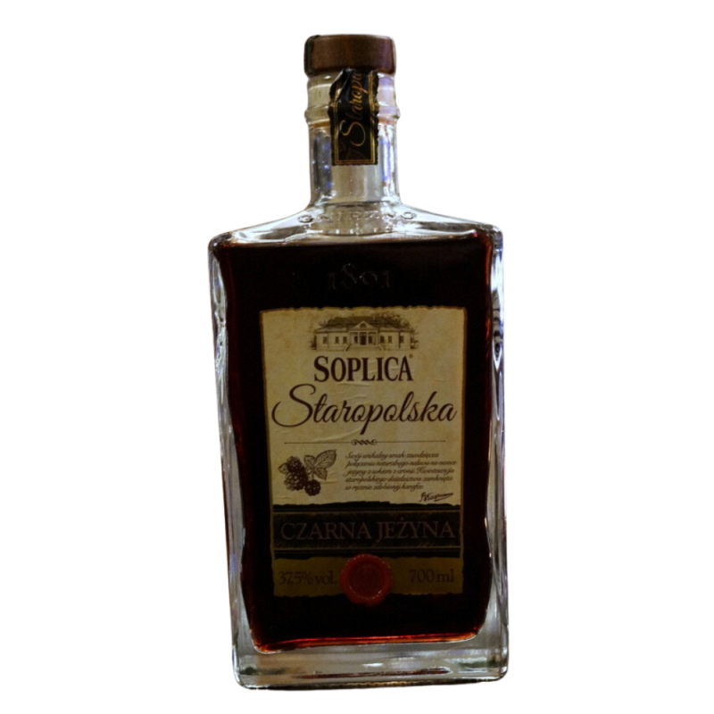 Soplica Staropolska Czarna Jeżyna 700ml to szlachetna nalewka klasy premium, powstająca w wyniku nalewu na owoce czarnych jeżyn, dopełnionego soczystą aronią. Soplica staropolska to linia ekskluzywnych nalewek, których celem jest przywrócenie pamięci o polskich owocach, stanowiących niegdyś składnik słynnych trunków z naszego kraju. Uwodzi nas wspaniałym aromatem dojrzałych jeżyn. Smak zdominowany jest przez nuty czekoladowo-wiśniowe. Jeżynowy cierpki finisz wieńczy to cudowne dzieło. Zapakowana jest w eleganckiej karafce, w związku, z czym może stanowić ciekawą propozycję na prezent.