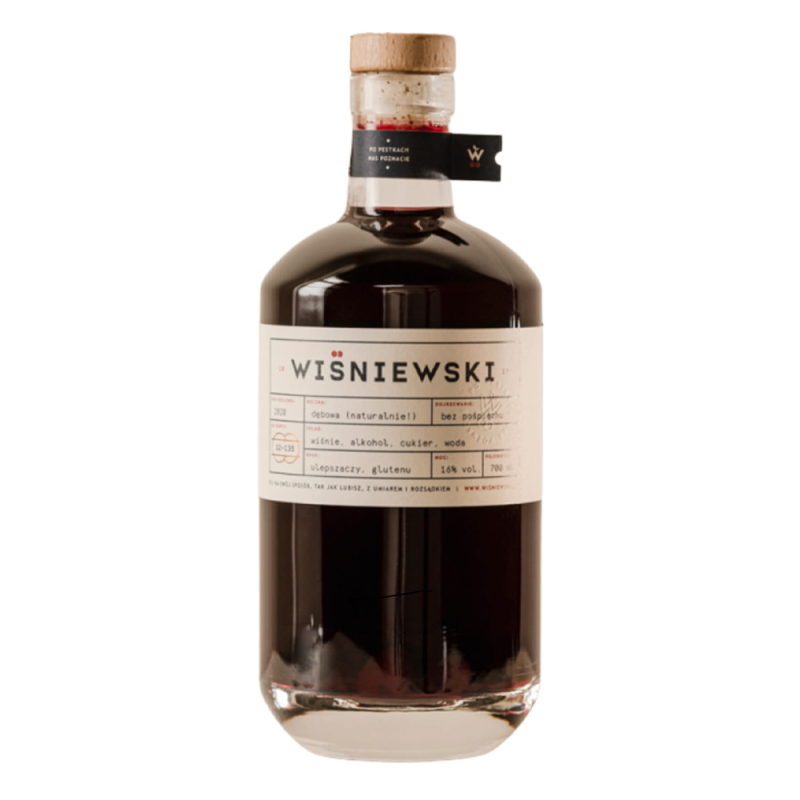 Wiśniewski to napój spirytusowy o charakterystycznym smaku i aromacie dojrzewających w polskim sadzie wiśni. Powstaje zgodnie z tradycjami nalewkarskimi - bez pośpiechu. Zanim butelka trafi w Twoje ręcę, na jej dnie może pojawić się osad, ale to naturalna rzecz, nic w tym złego. W butelce znajdują się całe owoce wiśni, mają pestki. To właśnie one podkreślają charakterystyczny smak i aromat naszego trunku - przekonaj się sam czy poczujesz róźnicę.