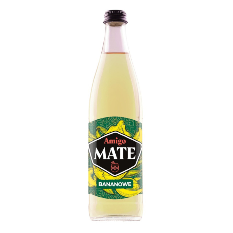Amigo Mate Banan to lekko gazowany napój na bazie yerba mate o słodkim, bananowym smaku, z naturalną kofeiną i orzeźwiającym charakterem.