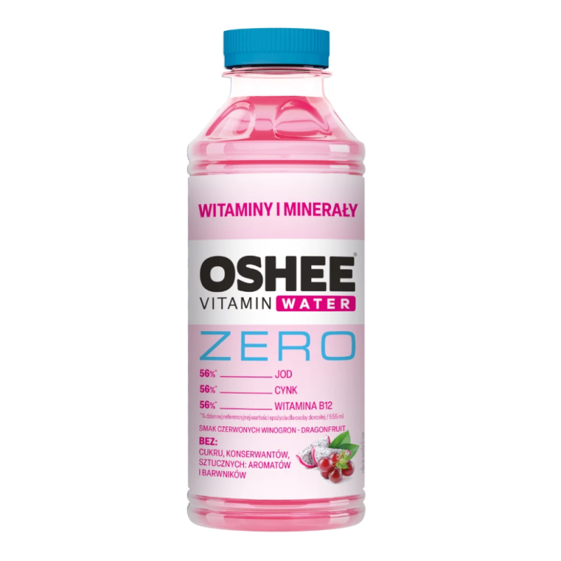 Owocowy napój bez cukru? Takim właśnie jest woda witaminowa OSHEE Vitamin Water witaminy i minerały ZERO 555ml, w której składzie nie znajdziesz nie tylko cukru, ale i konserwantów, sztucznych barwników oraz aromatów. W zamian za to nasza woda wzbogacona jest zestawem witamin i minerałów, niezbędnych dla zdrowia Twojego organizmu. A wszystko o wyjątkowym smaku czerwonych winogron połączonych ze „smoczym owocem”!