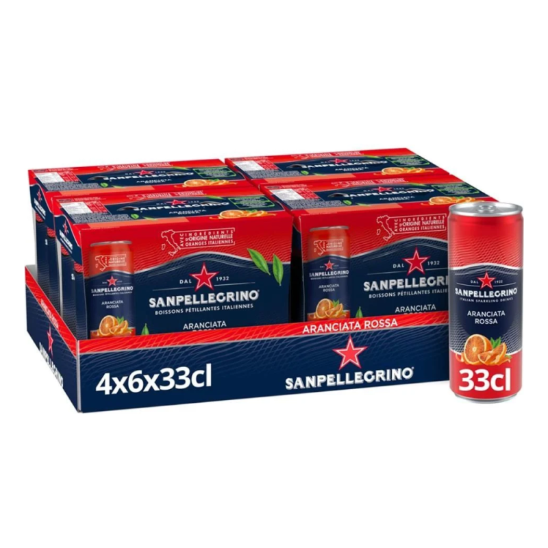 Sanpellegrino Aranciata Rossa Napój gazowany na bazie naturalnej wody mineralnej z sokiem z czerwonych pomarańczy Sanguinello. Do procesu produkcji wykorzystywany jest cały owoc - jego sok, miąższ oraz skórka i zawarte w niej olejki eteryczne. Czerwone pomarańcze Sanguinello dojrzewają w pełnym sycylijskim słońcu, po czym są ręcznie zbierane. Dzięki procesowi pasteryzacji naturalna woda mineralna Sanpellegrino z sokiem z czerwonych pomarańczy jest w pełni naturalna, nie zawiera żadnych sztucznych konserwantów. Wyjątkowy charakter nadaje napojom jej kultowa włoska marka - Sanpellegrino.