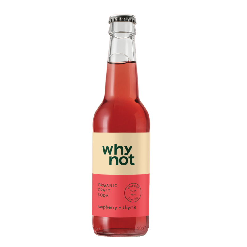 Why Not Organic Craft Soda – Malina & Tymianek 330 ml Poznaj wyjątkowy smak ekologicznej lemoniady Why Not – Malina & Tymianek. T