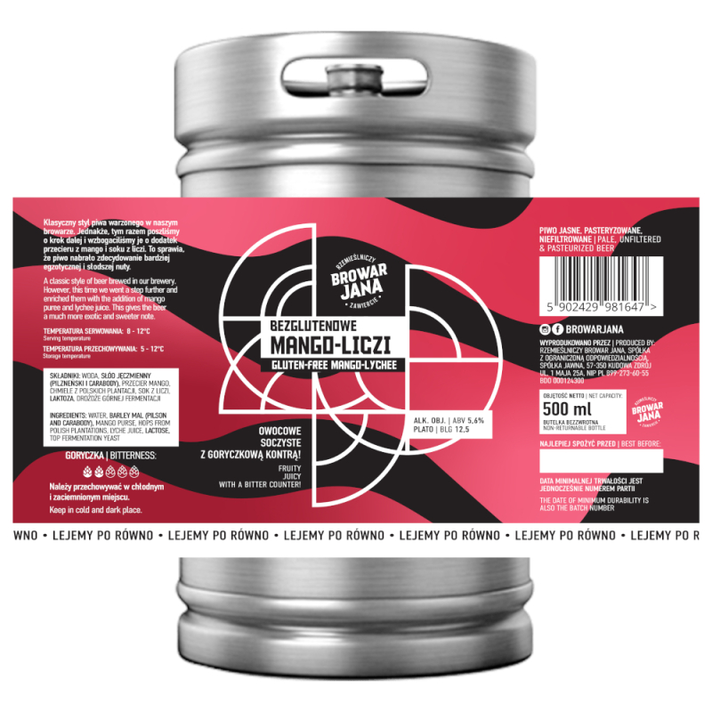 Klasyczny styl piwa warzonego w Browarze Jana, jednakże wzbogacone o dodatek przecieru z mango i soku z liczi.