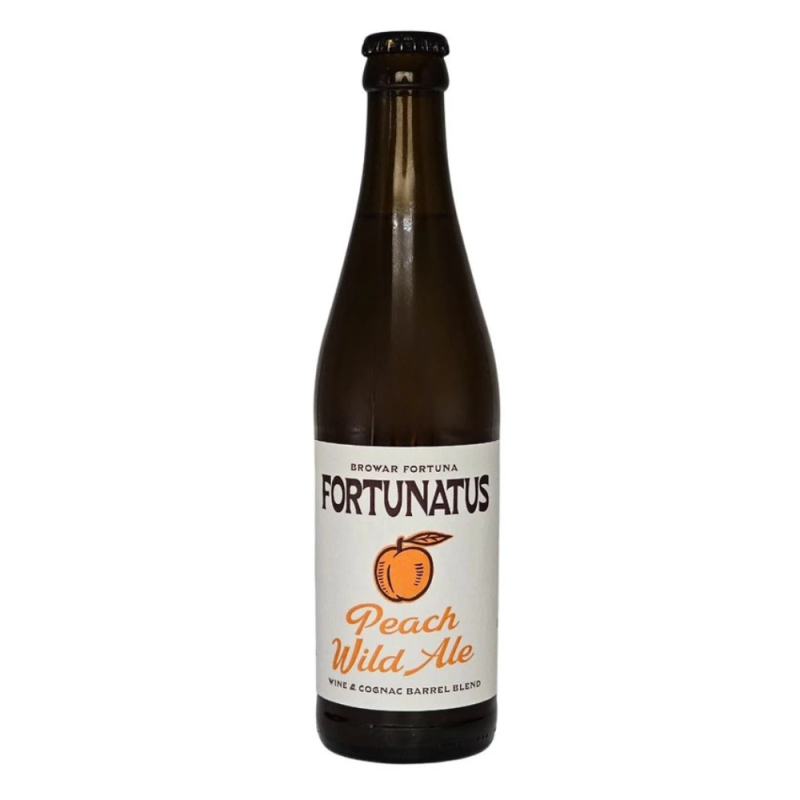 Fortuna Fortunatus Peach Wild Ale to wyjątkowe piwo, które łączy dziką fermentację z delikatnymi nutami brzoskwini, wzbogacone o głębię smaków wynikającą z leżakowania w beczkach po winie i koniaku. Warzone przez Browar Fortuna w Polsce, to piwo oferuje wyraźne owocowe aromaty, subtelne akcenty kwasowości oraz eleganckie, dębowe niuanse charakterystyczne dla beczek po koniaku. Idealne na specjalne okazje i degustacje, to piwo jest unikalnym połączeniem dzikiego ale z wyrafinowanymi beczkowymi tonami. W butelce o pojemności 330 ml to piwo zadowoli każdego miłośnika nietypowych, bogatych smaków.