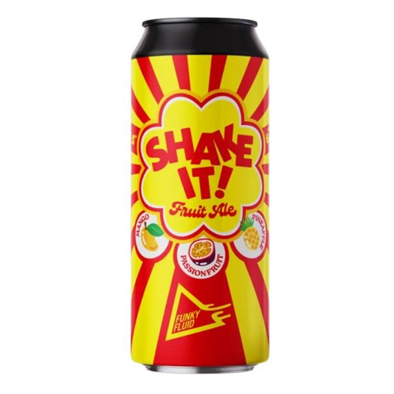 Shake It! Fruit Ale z dodatkiem Mango, Marakui i Ananasa zapoczątkowuje nową serię piw od Funky Fluid. Intensywnością smaków dorównują serii Gelato, jednak kwasowość pozostaje na niższym poziomie, nie uświadczymy również dodatku laktozy.