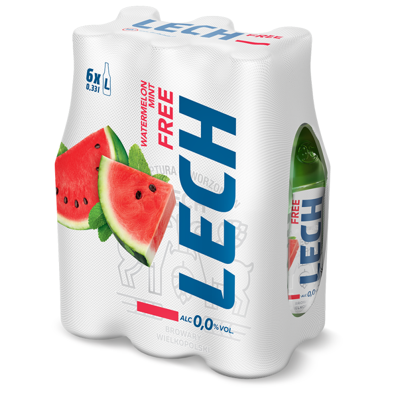 Lech Free 0,0% Arbuz z miętą to połączenia bezalkoholowego piwa ze smakiem soczystego arbuza i orzeźwieniem mięty.