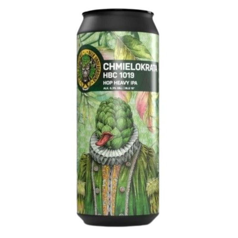 Piwne Podziemie Chmielokrata HBC 1019 HOP HEAVY IPA to jasne piwo górnej fermentacji, charakteryzujące się nutami kokosa, melona, pomarańczy i egzotycznych owoców.