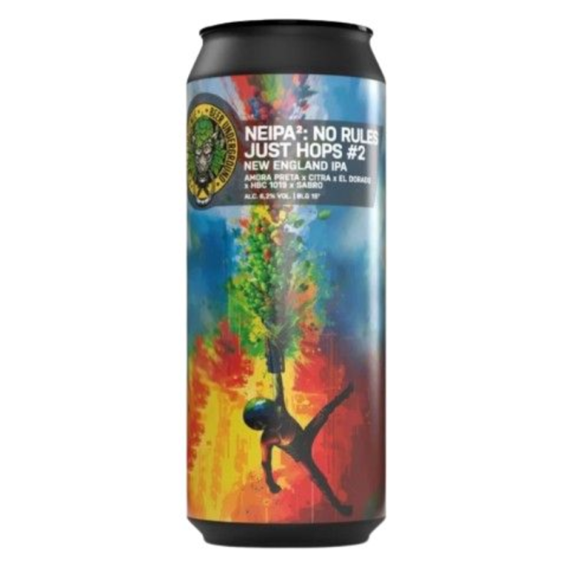 Piwne Podziemie No Rules Just Hops 2 to intensywnie chmielona New England IPA, która zachwyca głębokim, tropikalnym profilem smakowym i wyjątkowo soczystym charakterem.