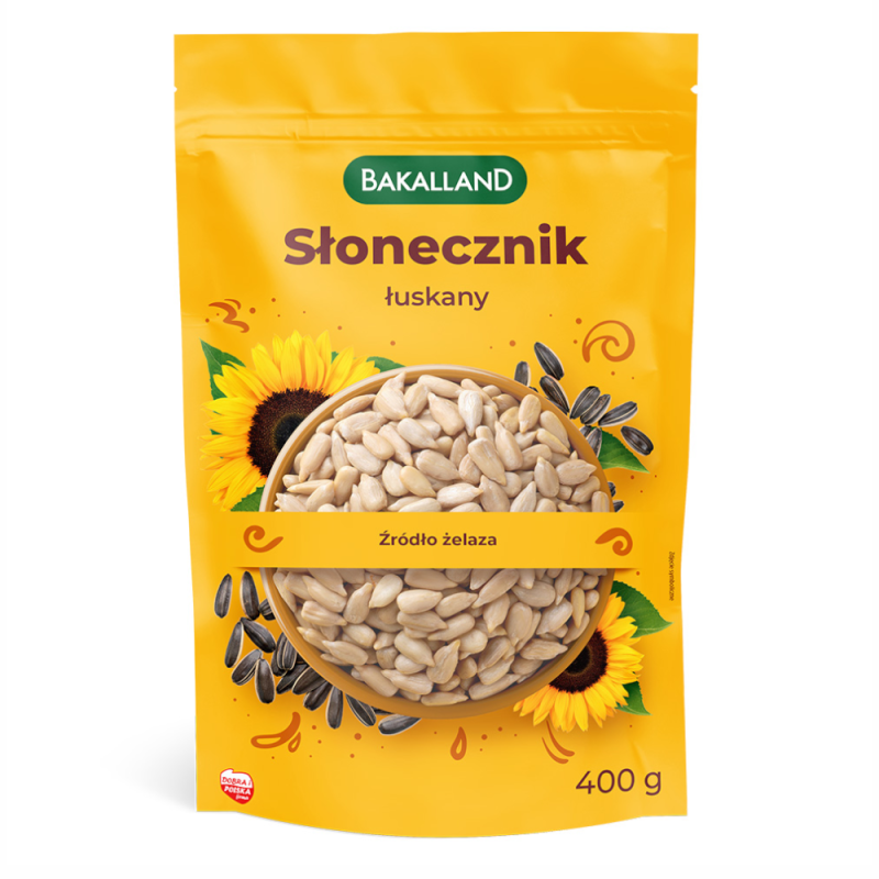 Słonecznik łuskany marki Bakalland to gotowe do spożycia ziarna, które mają szerokie zastosowanie w kuchni. Słonecznik charakteryzuje się chrupkością, dlatego produkt został szczelnie zapakowany, by utrzymać jak najdłużej tę cechę w jak najlepszej kondycji. Słonecznik Bakalland ma czysty skład, bez żadnych dodatków, dzięki czemu masz pewność, że dostarczasz sobie zdrowe ziarna i dobrej jakości produkt. Słonecznik jest w formie łuskanej, dlatego zaraz po otwarciu opakowania możesz go zjeść lub użyć podczas przygotowywania wielu potraw. Słonecznik łuskany Bakalland wykorzystasz w kuchni na wiele sposobów. Możesz dodać go do sałatek – dzięki swojej chrupkości doda warzywom przyjemnego dla podniebienia przełamania. Dobry pomysłem jest również przygotowanie z tych ziaren panierki do ryb lub kurczaka. Jeśli pieczesz własne chleby i bułki, to również możesz wrzucić garść słonecznika do ciasta. Dzięki temu Twoje wypieki staną się jeszcze bardziej zdrowe i naturalne.