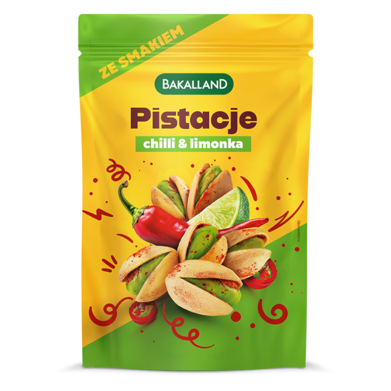 Pistacje prażone, solone, z dodatkiem chilli i limonki.