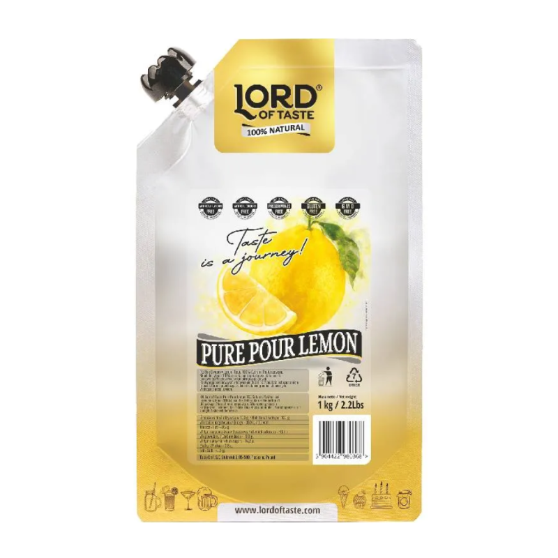 Puree Lord of Taste Cytryna stworzone jest z najwyższej jakości owoców pochodzących z wyselekcjonowanych plantacji. Jest to doskonały produkt do przyrządzania cocktaili, sorbetów, smoothie oraz dressingów. Produkt w 100% naturalny, nie zawiera sztucznych aromatów, barwników, słodzików, konserwantów i glutenu. Okres przydatności do spożycia to 12 miesięcy, po otwarciu max.7 dni.