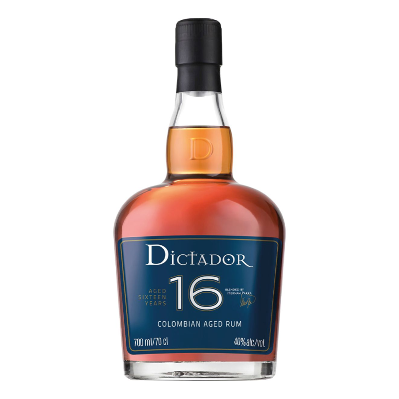 Rum Dictador 16 YO to kolumbijski rum, o pięknej bursztynowej barwie z czerwonymi refleksami. Wyczuwalne aromaty ciemnej czekolady, rodzynek i kawy z delikatną nutą dębu. W ustach rozgrzewające z nutami przypraw, wanilii i miodu. Finisz niezwykle długi z niuansami orzechów. Produkowane przez znanego master blendera Parra Arragno, którego rodzina od już 3 pokoleń współpracuje z marką Dictador. Rum leżakuje minimum 16 lat w beczkach dębowych.