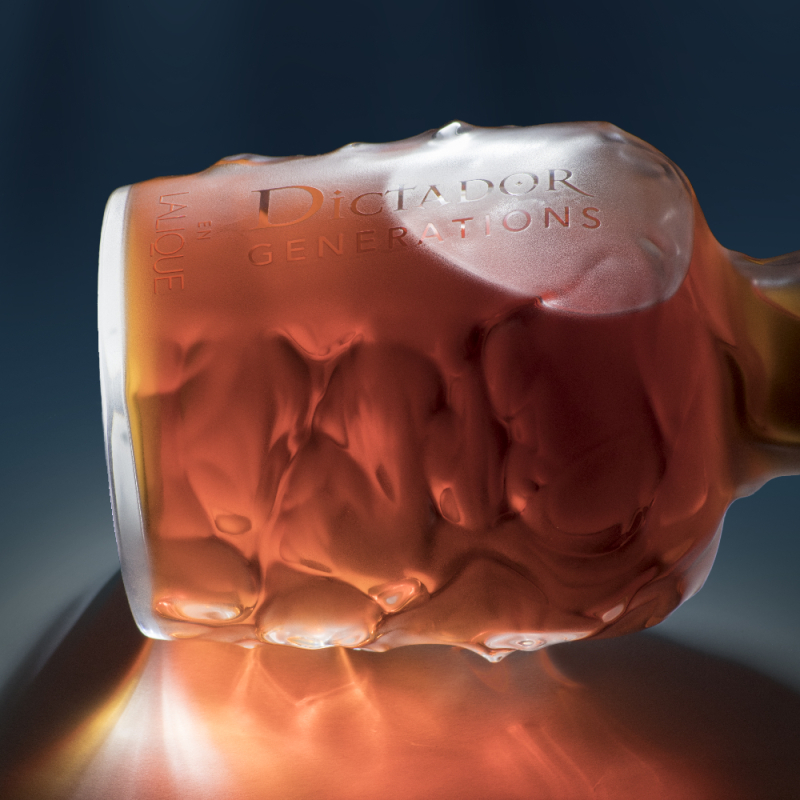 Butelka zaprojektowana przez Lalique inspirowana jest magią i tajemniczym pięknem Karaibów. Lalique uchwycił charakter karaibskiego cudu natury dzięki włączeniu motywów wody Morza Karaibskiego we wzory w swoim arcydziele. Charakter kryształowej karafki wzmocniony jest techniką matowienia, aby światło mogło wydobywać głębię koloru trunku. Karafka podkreśla DNA Lalique. Dictador Generations En Lalique jest limitowaną serią TYLKO 300 butelek.