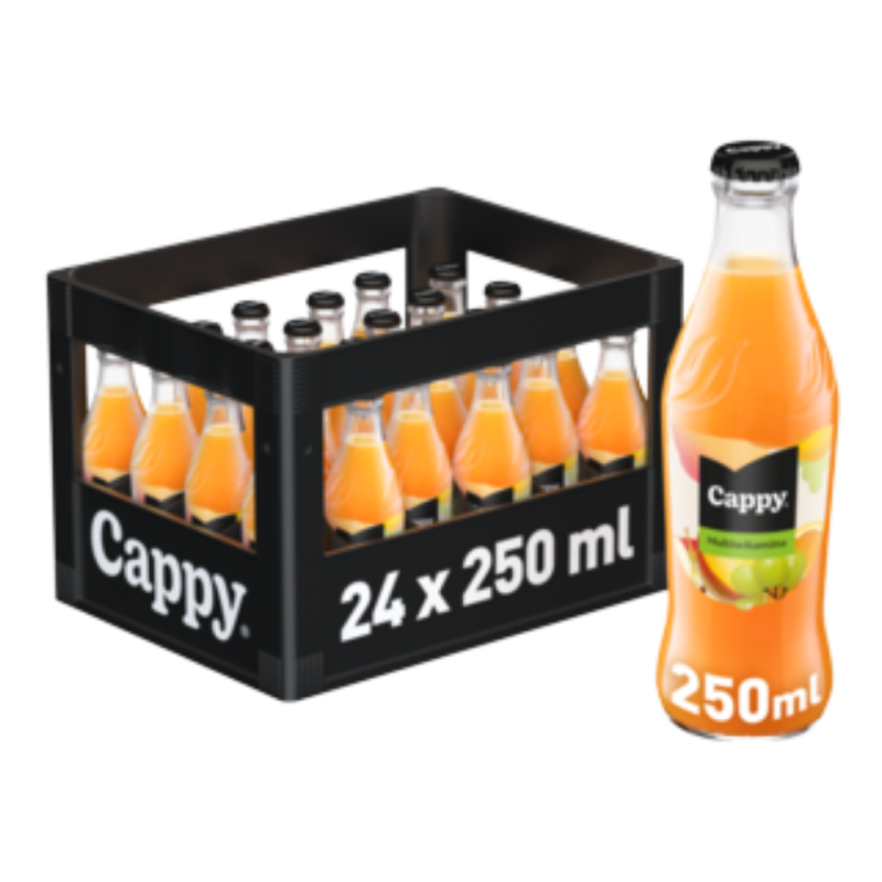 Cappy Multiwitamina to bogaty w smaku sok, który łączy w sobie starannie dobraną mieszankę owoców, takich jak pomarańcze, jabłka, marakuja i mango, tworząc wyjątkowo orzeźwiającą i zrównoważoną kompozycję. Każdy łyk dostarcza cenne witaminy, w tym A, C i E, które wspierają codzienną dawkę energii i wzmacniają organizm.