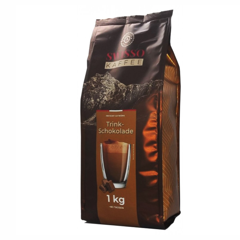 Swisso Kaffee Trink-Schokolade to czekolada do picia w proszku, łącząca intensywny smak czekolady z wygodną formą do przygotowania napoju. Jest idealna na chłodniejsze dni oraz jako przyjemne urozmaicenie codziennego rytuału. Doskonała dla miłośników czekoladowego aromatu, oferuje chwilę relaksu w zaciszu domu. Produkt ma postać napoju instant o wadze 1 kg.