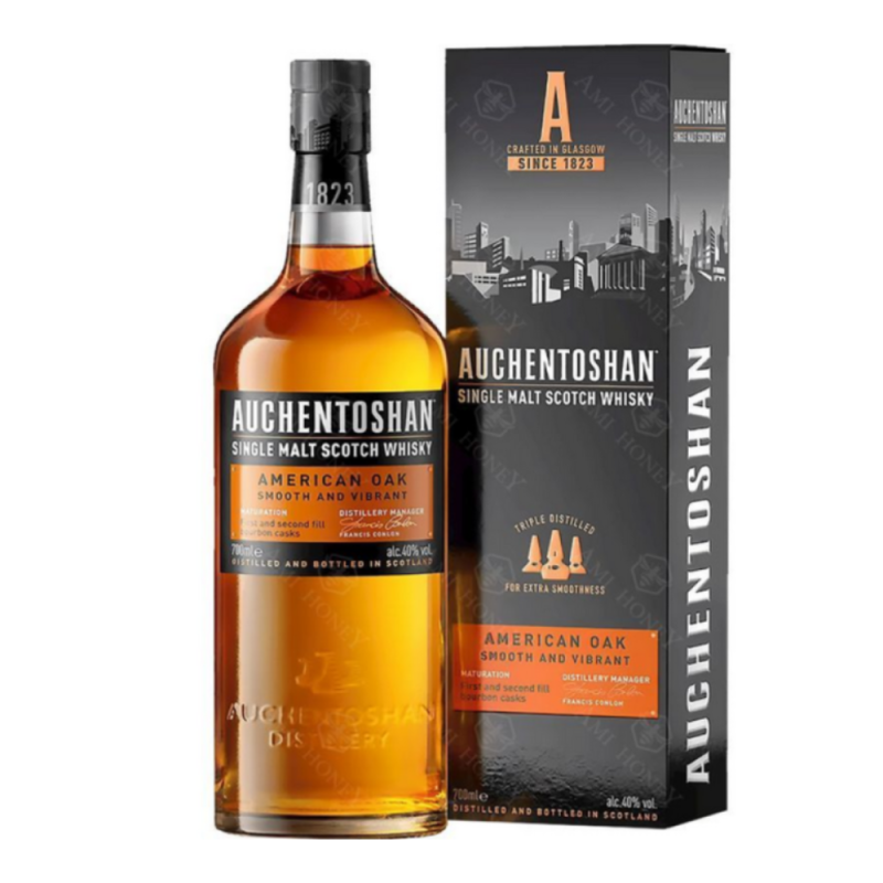 Auchentoshan to marka nr 1 lowland single malt na świecie według IWSR. Jest jedną z niewielu destylarni w Szkocji, która każdą kroplę płynu poddaje potrójnej destylacji, tworząc whisky o delikatnym smaku. American Oak to podstawowy wariant marki Auchentoshan leżakujący w beczkach po bourbonie. Rezultat: Lowland Single Malt Whisky o słodkich aromatach wanilii i kokosa o charakterystycznym gładkim, delikatnym smaku.