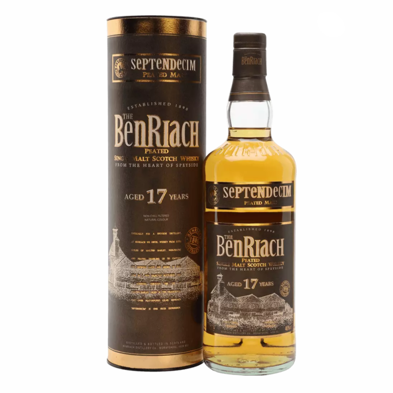 Benriach to jedna z najlepszych destylarni na rynku, która oferuje intensywnie torfowe i dymne słody. W jej ofercie znajdziemy również Heavily Peated Speyside Single Malt Whiskey ze Speyside, dojrzewającą w beczkach po bourbonie przez 17 lat. Trunek butelkowany jest przy 46% alkoholu.