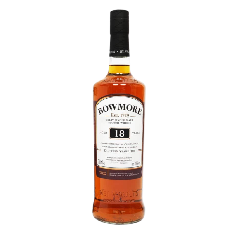 Bowmore 18YO to szkocka whisky single malt z destylarni Bowmore na wyspie Islay. Po 18 latach starzenia w dębowych beczkach, oferuje bogaty i złożony smak z nutami dymu torfowego, słodu, ciemnych owoców i delikatnymi posmakami czekolady, przyjemny dla koneserów.