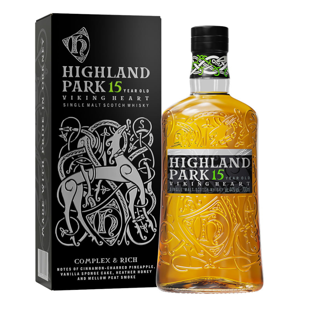 Highland Park 15 YO Viking Heart dojrzewał głownie w beczkach po sherry z dwóch różnych typów dębu. Europejskiego – który nadaje whisky przyprawowego charakteru oraz amerykańskiego – który wzbogaca whisky o smak wanilii. Whisky jest rozlana w mocy 44% dlatego zaleca się dodać kilka kropel wody, by wydobyć więcej aromatów.