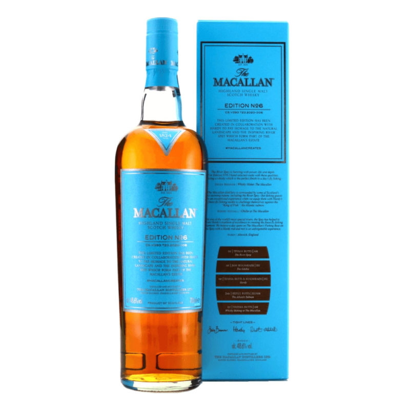 Whisky Macallan Edition No.6 to szóste i ostatnie wydanie z serii Edition od Macallan – inspirowana legendarną rzeką Spey i żyjącymi w niej atlantyckimi łososiami, które są bliskie wpisania na listę gatunków zagrożonych. Design opakowania powstał we współpracy z Atlantic Salmon Trust oraz producentem sprzętu wędkarskiego Hardy. Mistrz destylacji Macallana – Steven Bremer – wyselekcjonował 5 typów beczek po sherry w których leżakuje trunek.