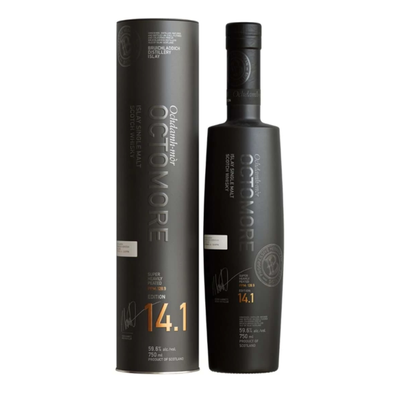 Octomore 14.1 to niebywale torfowa whisky pochodząca z wyspy Islay z destylarni Bruichladdich. To jedna z trzech whisky tworzących, zaprezentowaną w październiku 2023, czternastą edycję tej wyjątkowej serii.