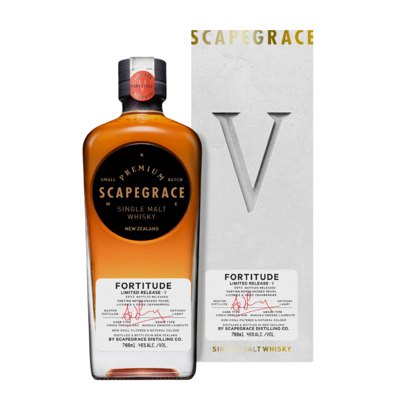 Scapegrace Single Malt Fortuna VI (New Zealand) to nowozelandzka whiskey single malt dojrzewająca w beczkach z amerykańskiego dębu, które wcześniej mieściły czerwone wino pinot noir. W aromacie dominują nuty ciemnych owoców, skórki pomarańczowej i delikatnych przypraw, takich jak gałka muszkatołowa i goździki. Na podniebieniu wyczuwalne są suszone śliwki, gorzka czekolada oraz subtelna taniczność pochodząca z beczek po winie. To elegancka i złożona propozycja o głębokim charakterze.