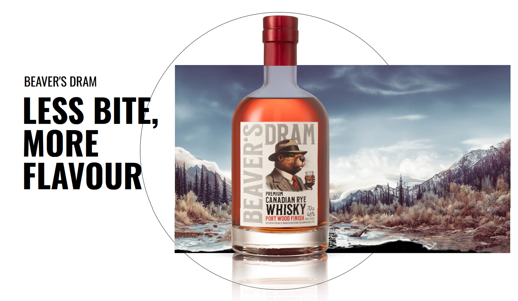 „Mniej pikanterii, więcej smaku" - to hasło przyświecało powstaniu Seven Seals Beaver's Dram Port Wood Finish. Ta elegancka kanadyjska whisky żytnia premium została opracowana we współpracy z Seven Seals Innovation - szwajcarskim partnerem znanym z innowacyjnego podejścia do dojrzewania alkoholi.