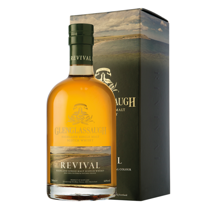 Glenglassaugh Revival to wyjątkowa whisky, która stanowi pierwszą oficjalną edycję wyprodukowaną po ponownym otwarciu destylarni Glenglassaugh w 2008 roku. Ta szkocka whisky single malt dojrzewała w mieszance beczek po czerwonym winie i świeżych beczek po bourbonie, a na koniec była finisowana przez sześć miesięcy w beczkach po Oloroso sherry, co nadaje jej złożony i bogaty profil smakowy. Zawartość alkoholu 46% sprawia, że ta whisky jest intensywna i pełna smaku. W nosie wyczuwalne są aromaty ciemnego czerwonego wina, dębu, suszonych owoców oraz przypraw. Na podniebieniu dominują smaki bogatego karmelu, słodkiego sherry, cytrusów i dębowej taniny, z odrobiną miodu i czekolady. Finisz jest krótki, z nutami przypraw, zboża i delikatnego dębu.