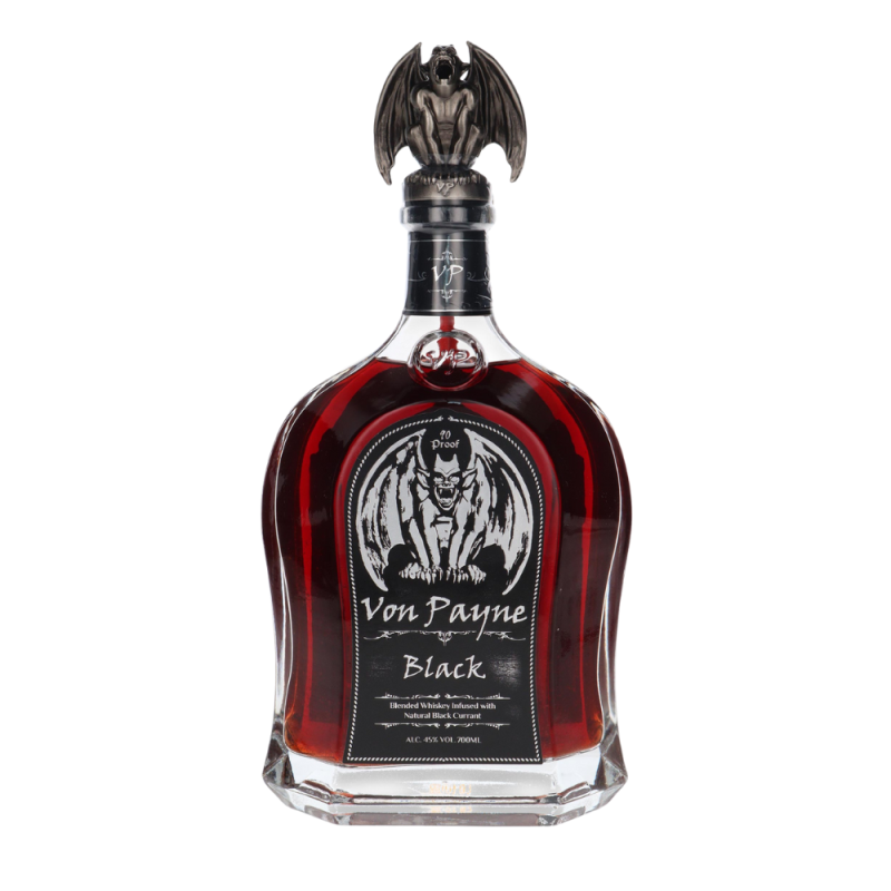 Von Payne Black to niezwykła amerykańska whiskey klasy premium, która łączy klasyczny, mocny charakter trunku z nowoczesnym, owocowym twistem. Infuzowana naturalnym ekstraktem z czarnej porzeczki, oferuje intensywny i zbalansowany smak: słodycz owocu przeplata się z nutami karmelu, przypraw oraz dębowej głębi.