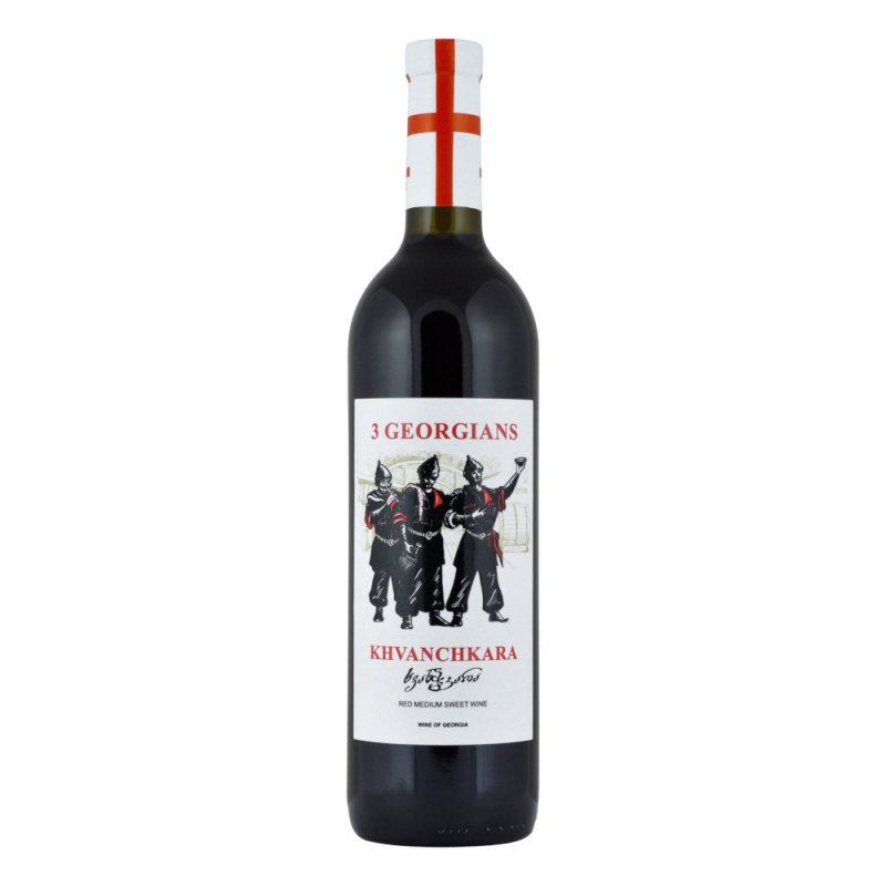 3 Georgians Khvanchkara Red Medium Sweet 750ml to ikoniczne półsłodkie czerwone wino z Gruzji, pochodzące z regionu Racha, znanego z wyjątkowego terroir. Powstaje ze szczepów Aleksandrouli i Mujuretuli, które nadają mu unikalny smak i aromat. Wino o intensywnej, rubinowej barwie, zachwyca bogatym bukietem dojrzałych czerwonych owoców, takich jak maliny, truskawki i wiśnie, z delikatnymi nutami kwiatowymi oraz subtelnym akcentem miodu. W smaku aksamitne, pełne i harmonijne, z wyraźną owocową słodyczą idealnie zrównoważoną lekką kwasowością, co czyni je wyjątkowo pijalnym.