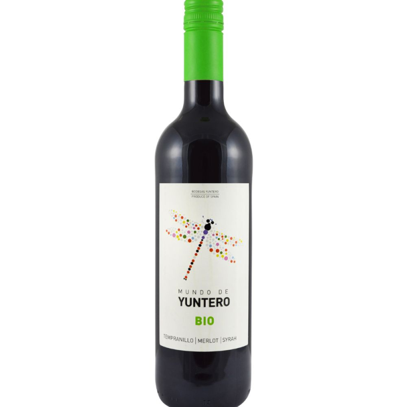Bio Mundo de Yuntero Tempranillo Merlot Syrah DO La Mancha 750ml to wytrawne, czerwone wino z regionu La Mancha W Hiszpanii. Powstaje ze szczepów Merlot, Syrah i Tempranillo. Produkowane przez Bodegas Yuntero. Mundo de Yuntero BIO Tempranillo Merlot Syrah to świeża, żywa delikatność na podniebieniu. Wino ma wyczuwalne nuty dojrzałych jagód i czerwonych dzikich owoców. Wino jest harmonijne, dobrze zbudowane i z charakterem. Wino ma długi finisz.