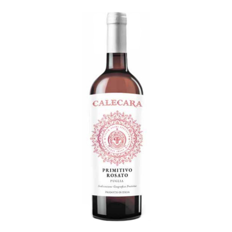 Calecara Primitivo Rosato jest winem otrzymywanym wyłącznie z odmiany Primitivo. Proces jego produkcji obejmuje krótką macerację owoców oraz fermentację moszczu w zbiornikach ze stali. W jego aromacie dominują lekkie nuty kwiatowe i owocowe, z wyraźnymi akcentami wiśni i malin. Na podniebieniu jest świeże i przyjemne. Doskonale komponuje się z daniami rybnymi, owocami morza, panierowanymi warzywami oraz przystawkami, tworząc harmonijną kompozycję smakową i aromatyczną.