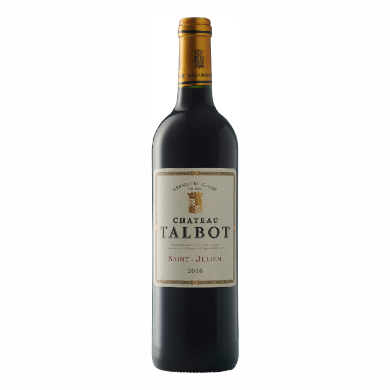 Château Talbot to 110 hektarowa posiadłość położona w samym sercu apelacji St-Julien. W 1855 roku została sklasyfikowana jako Grand Cru Classé. Wino Château Talbot dla wielu stanowi wzór win z Saint Julien - to potężny kupaż Cabernet Sauvignon (66%), Merlot (31%) i Petit Verdot (3%). Uwodzi bogatym aromatem ciemnych owoców leśnych i dębiny. W ustach pełne, eleganckie i soczyste, z akcentem czarnych porzeczek, jeżyn i malin z nutą czekolady i mięty w tle. Finisz długi o aksamitnych taninach.