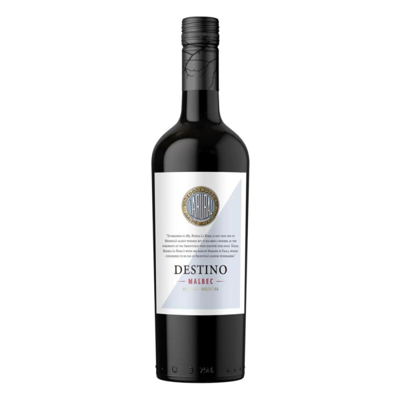 Destino Malbec 750ml to czerwone, wytrawne wino z regionu Mendoza w Argentynie. Produkuje się je w 100% ze szczepu Malbec. Wino charakteryzujące się głęboką czerwoną barwą z fioletowymi tonami. Pobudzające smaki owocowe, pełne aromatów wiśni i malin, zmieszanych z esencjami kwiatowymi, takimi jak fiołek i świeże nuty mięty. Dobrze zbalansowana i gładka, słodkawa struktura taninowa z przyjemnym i długim finisz. Idealne do łączenia z świeżymi owocami, dobrze komponuje się też z lekkimi potrawami, takimi jak makarony z nadzieniem mięsnym, niskotłuszczowe mięsa z grilla.