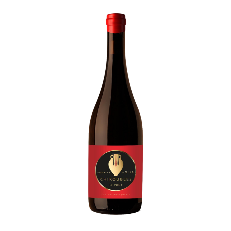 Domaine d’Olia Chiroubles ‘Le Pont’ 2023 to czerwone, wytrawne wino z najwyżej położonej apelacji cru Beaujolais – Chiroubles. Pochodzi z konkretnej parceli o nazwie *Le Pont*, uprawianej w sposób naturalny i zgodny z rytmem przyrody. To wino zachwyca lekkością, subtelnym aromatem kwiatów i soczystych czerwonych owoców, a także rześką mineralnością pochodzącą z granitowego podłoża. Styl idealny dla tych, którzy szukają eleganckiego, świeżego Gamay na co dzień i na ciepłe dni.