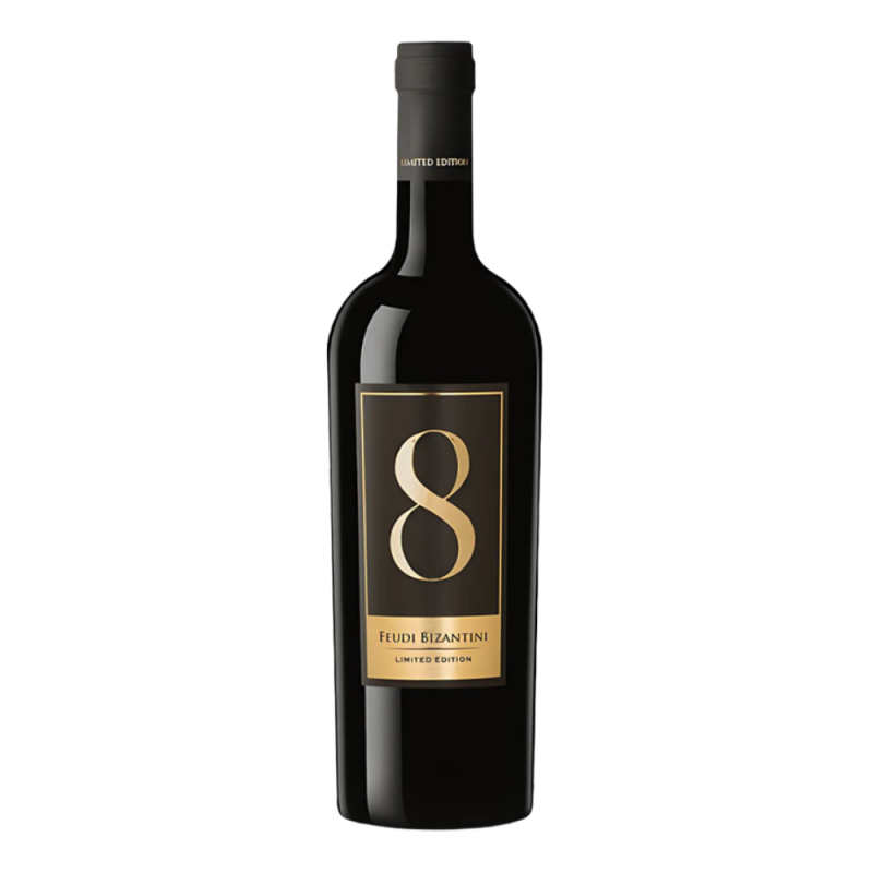 8 Limited Edition od Feudi Bizantini to wyjątkowe wino czerwone z Abruzji, powstałe z lokalnych odmian winogron. Charakteryzuje się intensywnie rubinową barwą, złożonym aromatem śliwek, wiśni i tytoniu, z delikatnymi nutami przypraw. Na podniebieniu pełne, bogate w taniny, z nutami kakao, kawy i wanilii. Część wina dojrzewa w beczkach, co dodaje mu głębi. Idealne do dań mięsnych.