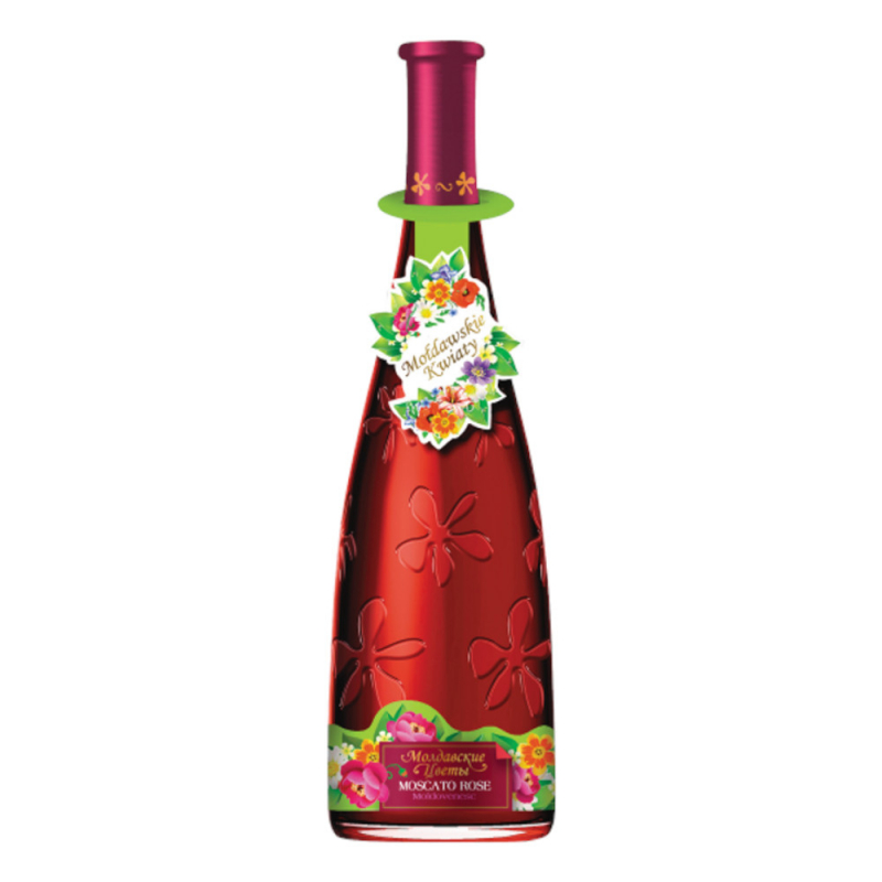 Kwiaty Mołdawskie Muskat to mołdawskie różowe wino półsłodkie o zawartości alkoholu 11.5%. Charakteryzuje się delikatnym, kwiatowym aromatem i łagodną słodyczą, doskonałe do deserów, lekkich dań i jako aperitif.