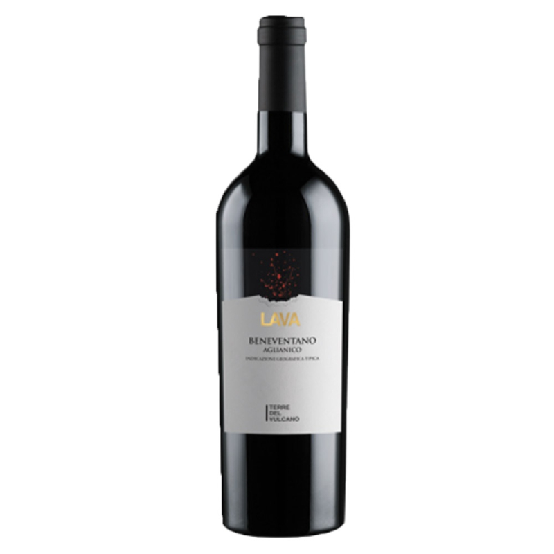 Włoskie czerwone wino Lava Beneventano Aglianico o intensywnym nosie, na który składają się aromaty czerwonych owoców, korzenne i waniliowe.