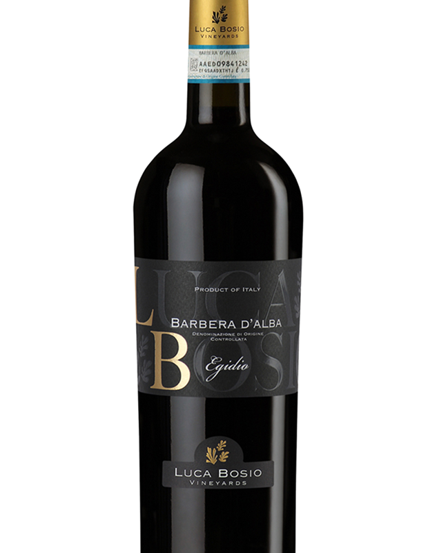 Włoskie wino Luca Bosio Barbera D'alba „Egidio” - czerwone wytrawne, z aromatami czerwonych owoców i wanilii. Pełne i harmonijne czerwone wino polecane do makaronów, serów i risotto.